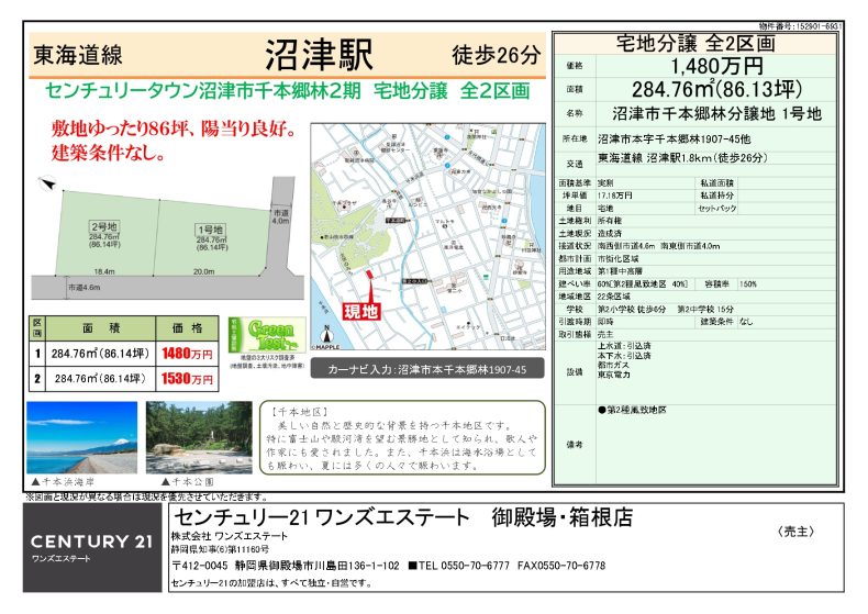 弊社売主物件の沼津市本千本郷分譲地のご紹介をさせていただきます。