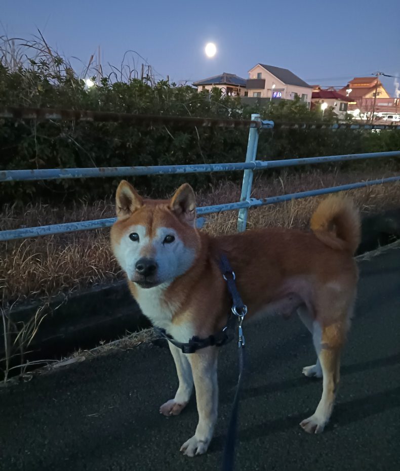 お散歩大好きっ子なかんちゃんに合わせてあちこち歩いていたらあっという間に暗くなってしまった!勘汰じいさん(かんちゃん)のあまりの元気さに久しぶりに会ったワン友のママさんにぎょっとされ・・・笑 この日は今年初の満月。目で見ると落ちちゃいそうなくらいまるまる大きくて立派なお月さまでしたよ。